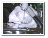 "Thank you for a great product, most of all our furniture thanks you. The pictures are rather large but I think you'll appreciate the size of the pictures once you see them. This Tommy with his new SoftPaws trying to get a drink or wash his paws after dinner, I'm not sure which."