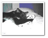 "We used this photo for our Christmas card in 2002 with the caption "Not a creature was stirring ..." We got so many comments about the Soft Paws that can been seen on Nikky's paws. Thanks for saving our furniture, our sanity and Nikky from undue pain."